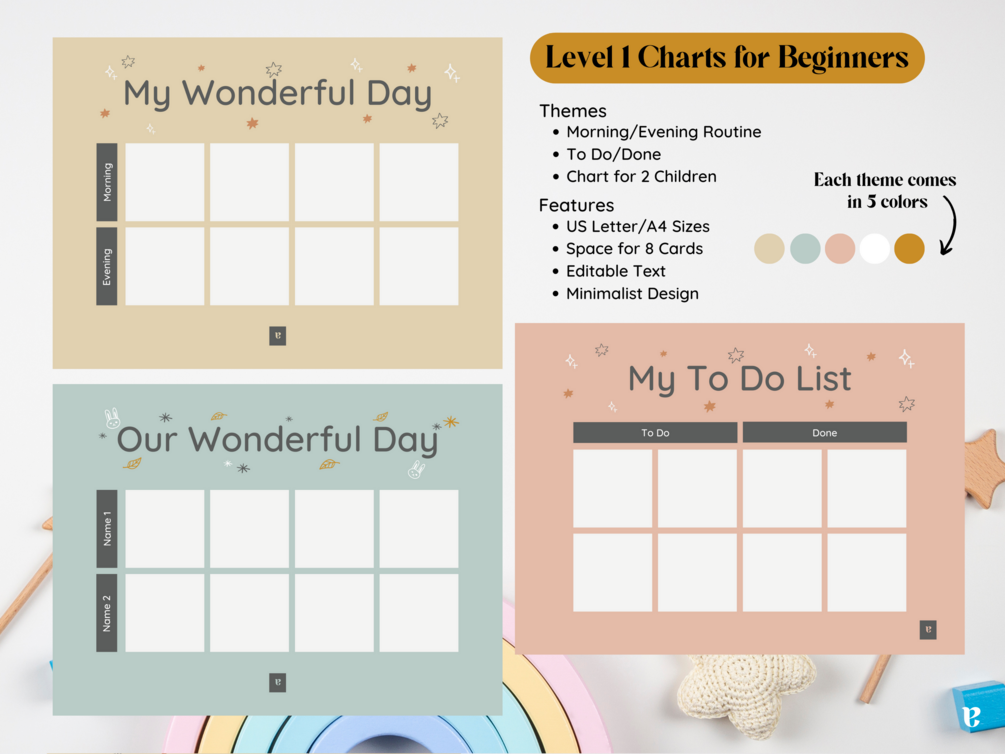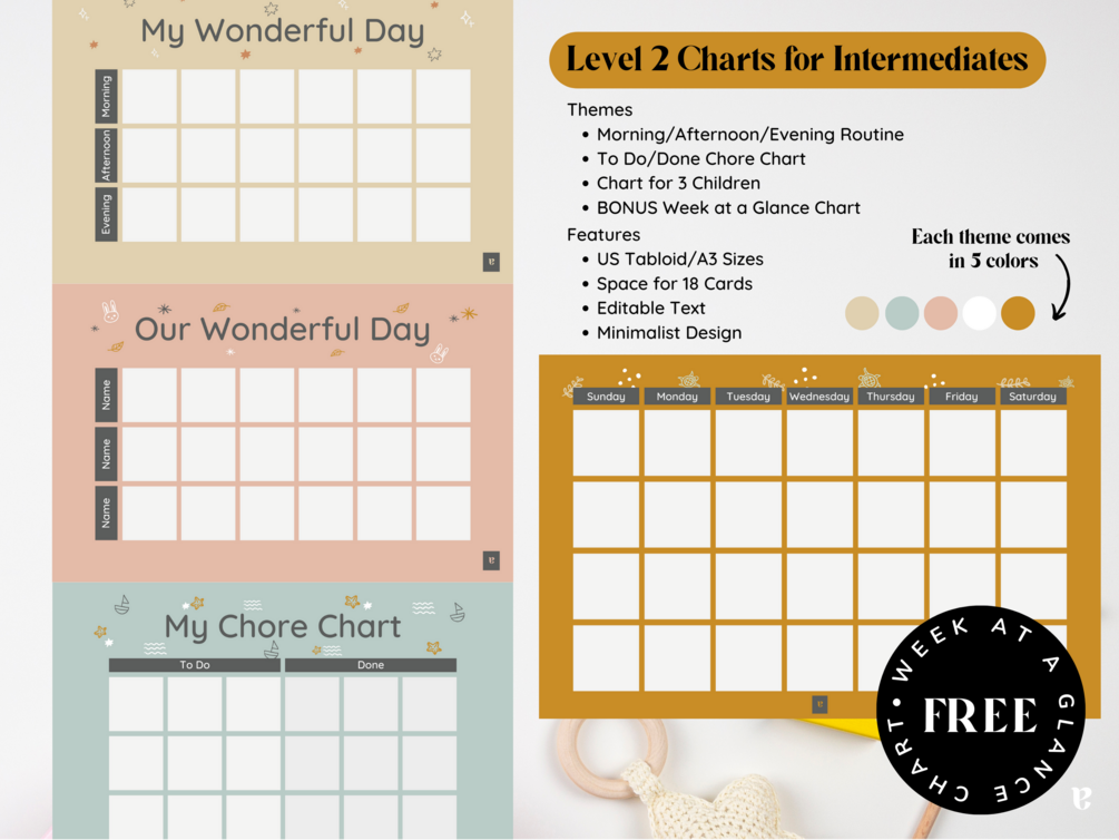 - Level 1 Routine Charts: 3 themes, 5 colors, US Letter/A4 Sizes